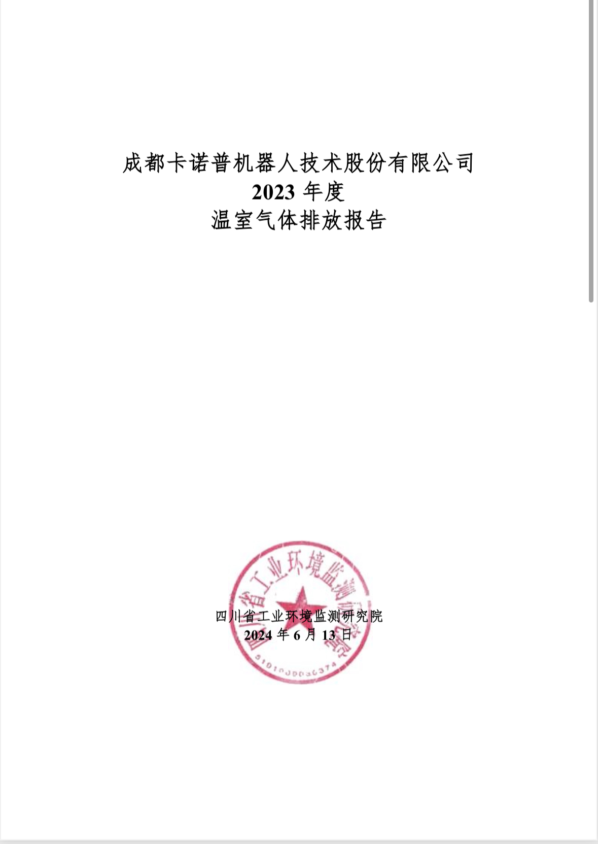 成都28圈电竞机器人技术股份有限公司 2023 年度 温室气体排放报告