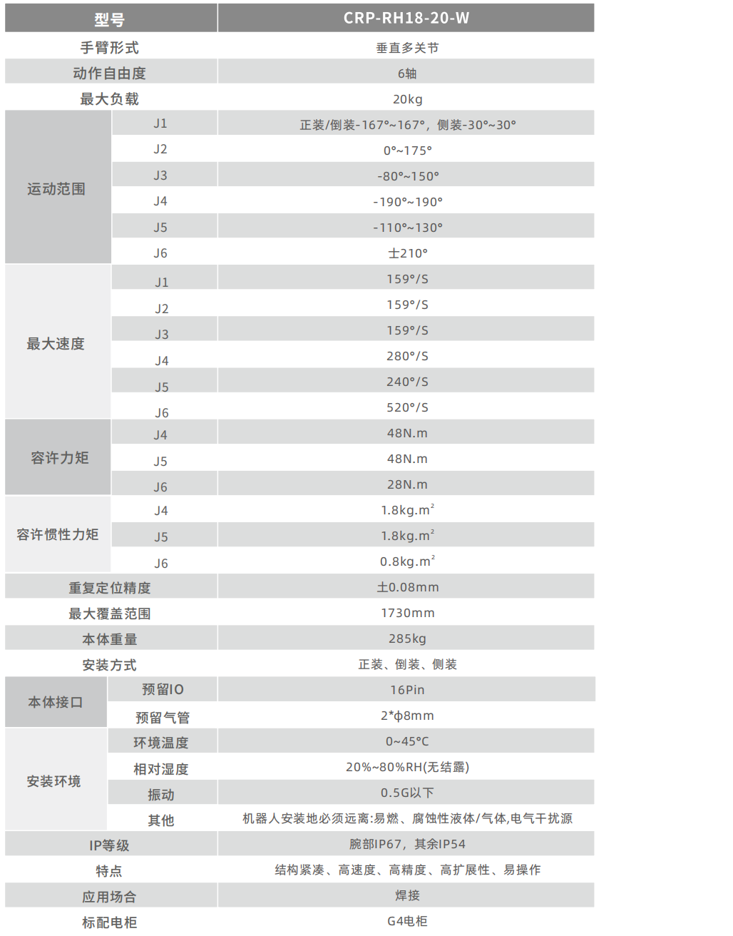 • 工作空间大、运行速度快、重复定位精度高,适用于焊接应用,适用范围广。